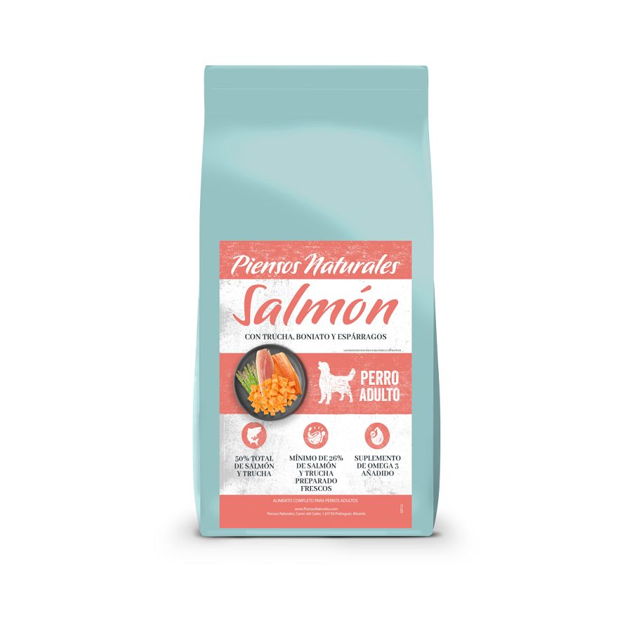 Composición: Salmón y Trucha 50% (incluyendo Salmón y Trucha Preparados Frescos 36%, Salmón Deshidratado 12% y Caldo de Salmón 2%), Boniato (24%), Guisantes (9%), Patata, Pulpa de Remolacha, Semillas de Lino, Suplemento de Omega 3, Minerales, Caldo de Verduras, Espárragos (0,3%), Fructooligosacárido (FOS, 96 mg/kg), Mannanoligosacáridos (MOS, 24 mg/kg) Constituyentes Analíticos: Proteína Bruta 26%; Grasa Bruta 11%; Fibra Bruta 3%; Ceniza Bruta 7,5%; Humedad 8%; NFE 44.5%; Energía Metabolizable 359 kcal/100g; Ácidos Grasos Omega 6 1,8%; Ácidos Grasos Omega 3 3%; Calcio 1,4%; Fósforo 0,9% Aditivos Nutricionales Por Kg: Vitaminas: Vitamina A 15,000 IU, Vitamina D3 2,000 IU, Vitamina E 95 IU Oligoelementos: Zinc (Sulfato Monohidratado de Zinc) 50 mg, Hierro (Hierro (II) Sulfato Monohidratado) 50 mg, Manganeso (Sulfato de Manganeso Monohidratado) 35 mg, Yodo (Yodato de Calcio Anhidro) 1 mg